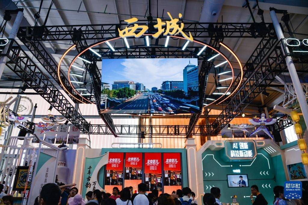 9月13日,在北京首钢园拍摄的2025年服贸会文旅服务展馆西城区展台。